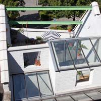 Het is voor architecten vaak een hele uitdaging om in dichtgebouwde entiteiten met beperkte buitenruimtes een gebouw naar lucht te laten happen. Terrassen worden aan appartementen gehangen, daken worden uitgesneden, verloren tussenruimtes worden geherwaardeerd ... kortom: veel creativiteit en inventiviteit is vereist.