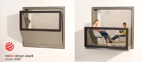 Het Bloomframe® balkon is een innovatief raamkozijn dat getransformeerd kan worden naar een balkon. Het biedt de gebruiker een flexibele leefomgeving. Door het openen van het raamkozijn ontstaat de mogelijkheid door de gevel naar buiten te lopen en te genieten van buitenruimte. Met één druk op de knop voegt men licht, lucht en ruimte toe. En juist dat geeft het ware buitengevoel. De aandrijving bestaat uit een elektromotor die op twee punten door middel van trekstangen het balkon aandrijft. De volledig geopende positie is mechanisch begrensd waardoor een optimale veiligheid van het uitgeklapte balkon gewaarborgd is. Door de toepassing van een elektrisch/mechanische beweging is het geheel gebruiksvriendelijk en door iedereen eenvoudig te openen en te sluiten.