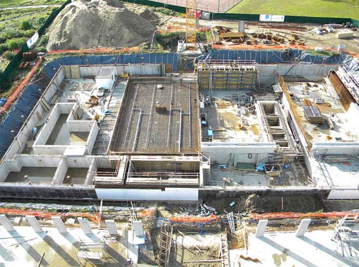 De medewerkers van De Nekker hebben dag na dag de werf zien groeien en veranderen. Wat ooit een minigolf was, werd een bouwput. Niet erg prettig als zicht vanuit je kantoor, maar stilaan maar zeker kreeg de put meer en meer vorm. Wat eerst alleen maar wat beton en ijzerwerk leek, is nu weldegelijk een zwembad aan het worden. Paul Verbeeck, medewerker in De Nekker, wierp zich op als fotograaf van dienst. Zelfs de hoogste kranen konden hem niet tegenhouden!
