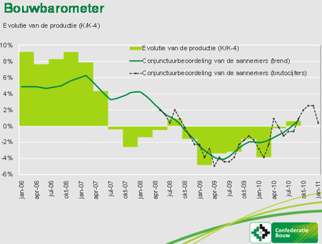 Tijdens de periode van november 2010 tot januari 2011 gaven de aannemers aan dat zij beschikken over een orderboekje met daarin werk voor 5,31 maanden, dit is een hoger niveau dan dat voor de periode van augustus tot oktober 2010 (5,26 maanden).