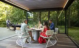 Als je droomt van een volledig afgesloten overkapping, ook wel een tuinkamer genoemd, dan zijn glazen schuifwanden een slimme keuze. Door zoveel mogelijk glas te gebruiken, blijft het zicht naar buiten behouden en kan er volop licht binnenstromen. Bovendien zijn schuifwanden flexibel in gebruik. Op warme dagen kun je ze volledig openzetten voor een naadloze verbinding met je tuin. In de winter houd je ze juist dicht en zet je de terrasverwarmer aan voor een aangename temperatuur. Zo profiteer je van het beste van beide werelden! Op Solundo.nl lees je meer over de mogelijkheden van glazen schuifwanden.