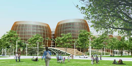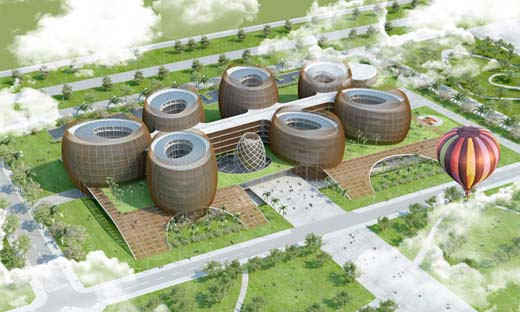 Het ziekenhuis zal zich naast een drukke snelweg bevinden. Een tussenliggend bamboeveld zal fungeren als geluids- en vervuilingsbuffer. Voorts is er ook een centrale voor afvalcollectie en -behandeling voorzien. Een organische helling onder de beddenvleugels fungeert als buffer voor de rest van het gebied, maar ook als dak voor de medische diensten. Het ziekenhuis maakt samen met andere zorginstellingen deel uit van een groot masterplan. Een publiek plein zal de openbare functie van het ziekenhuis versterken en het gebouw verbinden met de toekomstige uitbreiding. Tot slot bevat het ontwerp, als helende omgeving, ook enkele duurzame maatregelen zoals natuurlijke ventilatie, nachtkoeling, een uitgekiende zonwering en gebruik van zonne-energie.