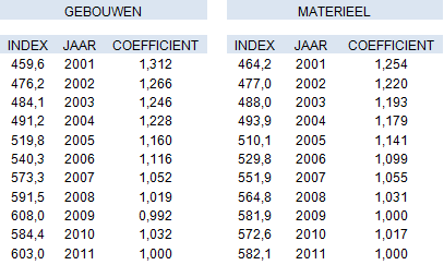 De INDEX-MATERIEEL houdt rekening met de prijsevolutie van het bestaande machinepark in de Belux.