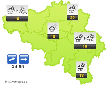 Vanavond en volgende nacht wordt het nevelig en overal droger met opklaringen en bewolkte perioden. De minima schommelen tussen 9 graden op de Ardense hoogvlakten en 16 graden aan zee. De wind waait zwak tot matig uit westelijke richtingen.