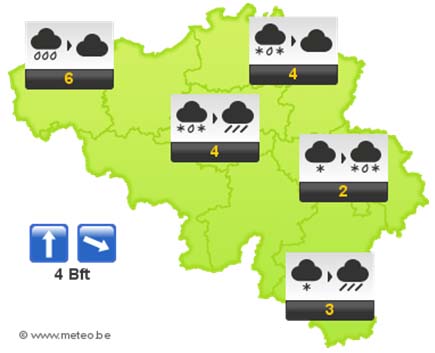's Avonds valt er nog wat (smeltende) sneeuw in de Ardennen maar het wordt geleidelijk droog met opklaringen in de meeste andere streken. Op het einde van de nacht kan er nieuwe regen vallen aan zee. Minima rond 1 graad.