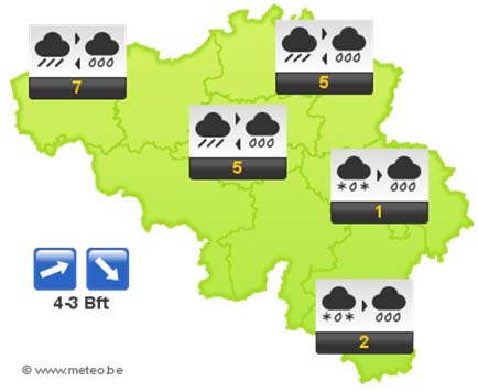 Morgen valt er soms regen of smeltende sneeuw, en in de Hoge Ardennen sneeuw. Later wordt het geleidelijk droger met kans op een paar opklaringen vanaf het noordoosten. De maxima liggen tussen 0 en 5 graden.