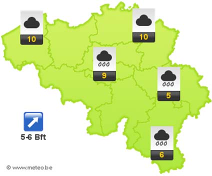 Ook de komende nacht blijft het overwegend zwaarbewolkt. Het blijft zeer zacht met minima tussen 4 en 9 graden. Het blijft hard waaien.