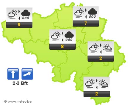 Volgende nacht verwachten we steeds veel wolken waaruit nog wat lichte regen of motregen kan vallen en op de hoogten wat winterse neerslag. Het is nevelig of lokaal mistig. De minima situeren zich tussen 1 graad in de Hoge Venen en 6 graden over het westen.