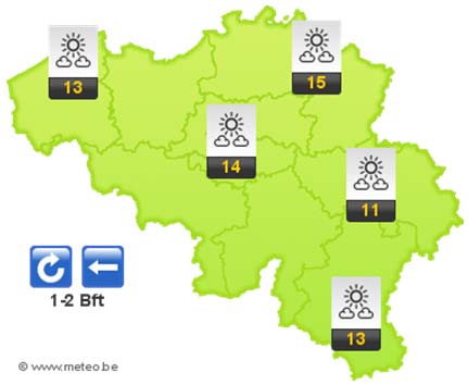 Dinsdag krijgen we na het optrekken van het ochtendnevel mooi, rustig en zonnig weer met in het noorden soms enkele wolken. De maxima schommelen tussen 10 en 14 graden. Ook woensdag en donderdag blijft het droog met opklaringen en wolkenvelden. De temperaturen blijven zacht.