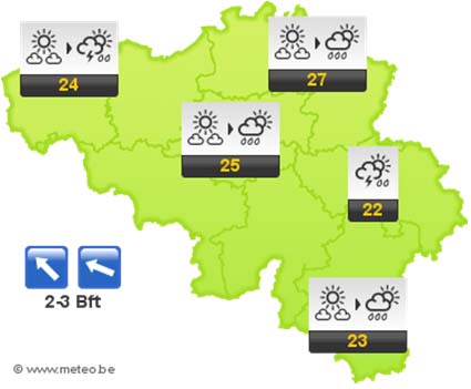 De volgende dagen blijft het warm en meestal zonnig. 's Namiddags ontwikkelen zich wel stapelwolken, die tegen 's avonds zelfs voor een lokale onweersbui zouden kunnen zorgen. De maxima liggen tussen 25 en 27 graden in het centrum van het land. Door de zeebries wordt het aan de kust iets minder warm.